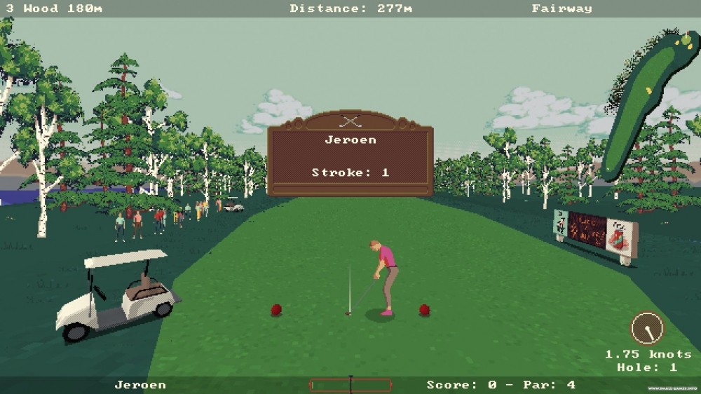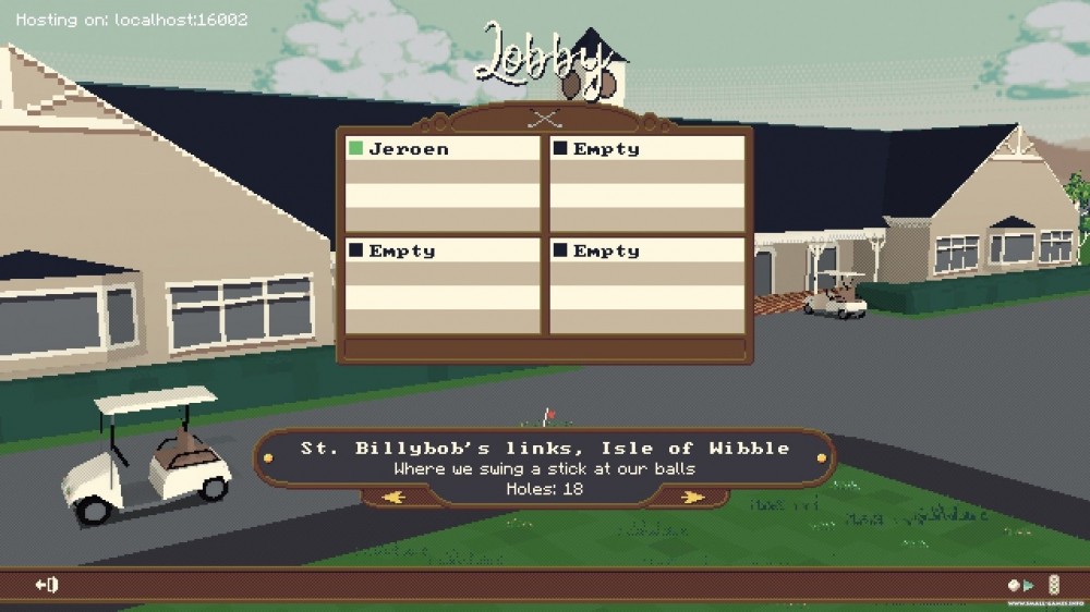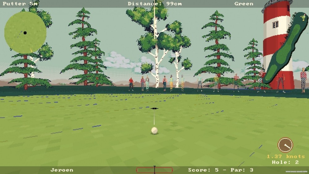 В сетевых матчах может принимать участие до 16 игроков. Игровой процесс полностью повторяет механики и правила оригинальной игры в гольф. Каждый игрок может настраивать своего персонажа, задавая ему уникальные параметры внешнего вида, а также выбирая снаряжение, включая клюшки и т.п. Геймплей представлен как от первого, так и третьего лица. Графически игра стилизована под 8-битные аркады прошлого века.