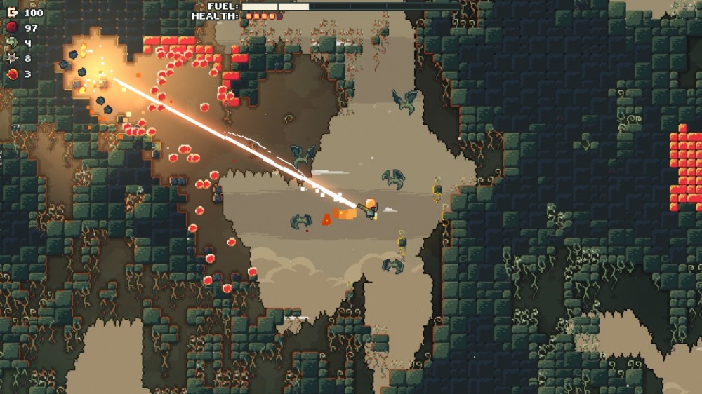 В игре Бластронавт на выбор дается 2 режима: подобие кампании с бесконечными заданиями и песочница, где надо развлекать себя самостоятельно. Герой взрывает горные породы и сражается с местной агрессивной живностью. У него есть лазер, взрывчатый гель и ракеты. Персонаж способен уничтожить оружием самого себя, что вынуждает целиться аккуратно. Он умеет бегать влево и вправо, а также пользоваться ракетным ранцем. Можно стрелять во время полётов. Однако бесконечно летать не получится из-за ограниченного запаса топлива. Протагонист ещё может расширять платформы и ставить на них различные постройки. Геймплей отчасти напоминает Starbound. Смысл игрового процесса состоит в том, чтобы находить ресурсы и продавать их, а затем улучшать свой костюм, базу, джетпак и вооружение.
