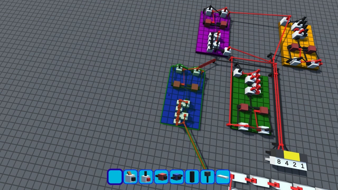 Logic World позволяет не только собирать виртуальное железо, но и программировать его. Тут можно создавать полноценные калькуляторы или даже хранилище данных. Вариативность ограничивается только фантазией геймеров и научными законами. Движок проекта способен выдерживать массивные связки с высокой скоростью обновления информации и не лагать при этом. Конструирование моделей происходит с видом от первого лица и свободным перемещением во всех направлениях.
