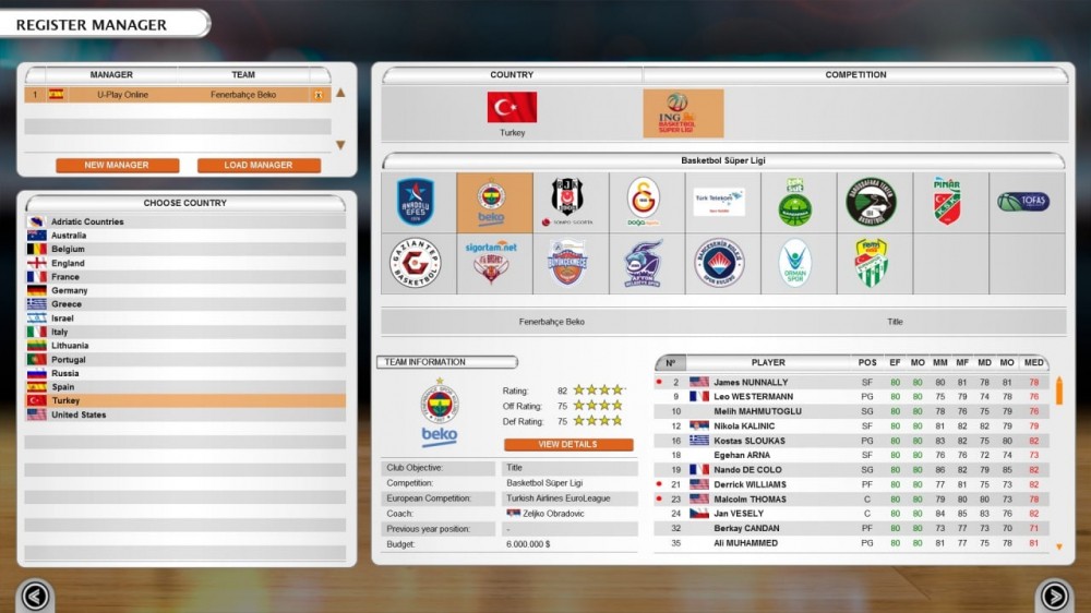 Проект имеет 3 спортивные лицензии: Turkish Airlines EuroLeague, 7DAYS EuroCup, ING Basketbol Süper Ligi. Поэтому здесь есть реально существующие игроки и настоящие команды. Спортсмены различаются между собой 15 характеристиками: атакой, защитой, лояльностью, адаптацией и т. п. Их можно прокачивать. Всего доступно 40 европейских и 16 турецких клубов. Можно принимать участие в 18 турнирах по всему миру и участвовать в лигах США, России, Франции, Испании, Греции, Италии Германии, Австралии и других стран. Также имеется Чемпионат Европы и Олимпийские игры. Помимо сингла есть локальный мультиплеер. За одним ПК могут развлекаться до 8 юзеров.