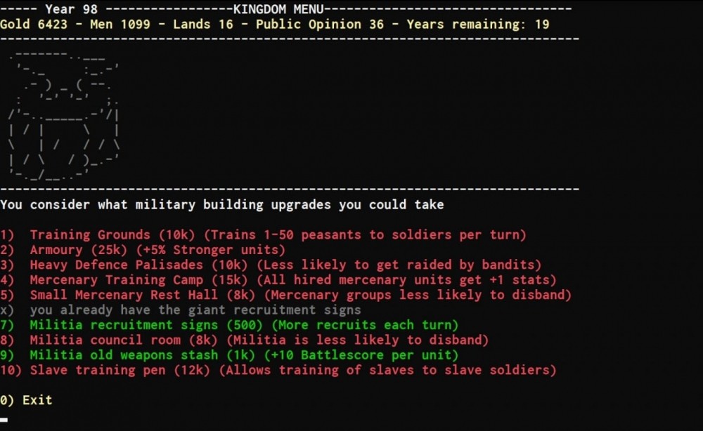 Игрок способен своими действиями влиять на карту. К слову, на ней есть скрытые места, в том числе и тайные поселения. Близлежащие территории разрешают захватывать, покупать или грабить. Геймер создает свою армию, а в случае необходимости он может воспользоваться услугами наемников. Также в этом тайтле есть встречи с людьми в тронном зале. Поначалу к виртуальному правителю будет приходить мало гостей. Но по мере роста империи посетителей будет становиться всё больше. Юзеру доступны различные реакции и варианты действий. Можно поручить советнику заниматься приемами во дворце вместо себя, установить люк-ловушку, чтобы наиболее раздражающие создания падали в смертельную яму и т. п.