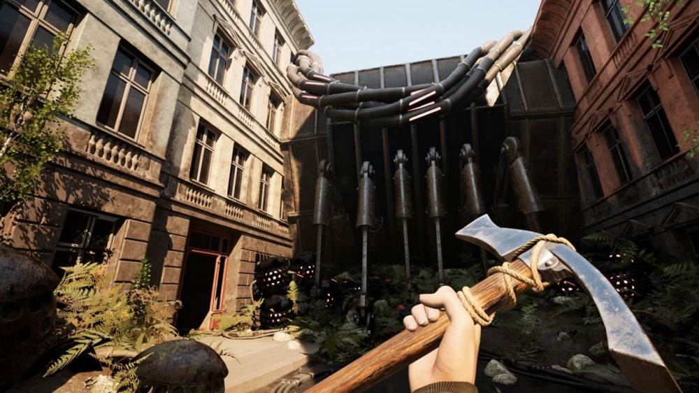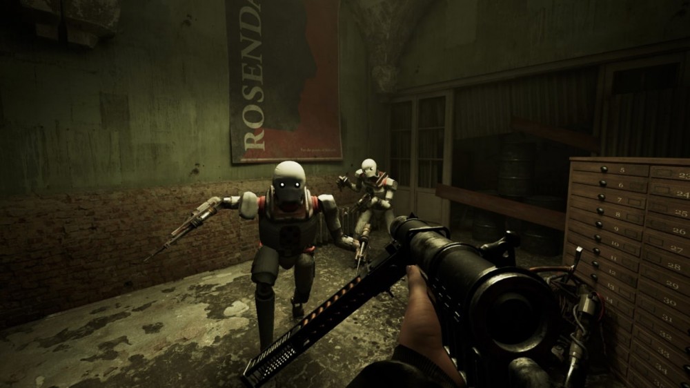Игровой мир INDUSTRIA - это смесь Германии времён Холодной войны со стимпанком. Сюрреалистичные механизмы, опасные роботы, странные гиганты... Атмосфера здесь на первом месте, и ради полного погружения разработчики убрали весь худ. Вообще весь: ни прицела, ни полоски здоровья, ни подсказок. Целишься через мушку оружия, предметы не светятся волшебным образом, путь никто не показывает стрелочками. Приходится полагаться только на себя и свои навыки выживания. С одной стороны, это усложняет процесс (особенно если привык к современным шутерам с кучей подсказок), с другой - позволяет реально проникнуться тем, что происходит на экране. Чувствуешь себя частью этого мира, а не просто игроком, который смотрит на иконки интерфейса.