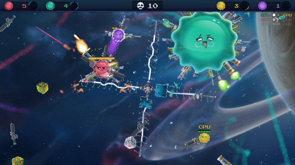 Игра предоставляет целых девять индивидуальных режимов, каждый из которых непохож на другие: запоминающийся классический дезматч с дополнительными режимами, соревнования на время, футбольные матчи, испытание "король комбо", стремительный блиц, веселье с бомбометанием, вкуснейшая единая битва, а также песочница для полной творческой свободы. В каждом режиме вам предложены эксклюзивные бонусы, доступные в специальных ящиках на арене. Они способны как служить вам подспорьем в бою, так и нарастить сложность игры. Armed and Gelatinous: Couch Edition отказывает вам в подробных объяснениях каждого усиления, поэтому придется опираться на свой опыт, оттачивая мастерство на практике. Ждем вас, чтобы загрузить последнюю версию игры через торрент прямо на ваш ПК.