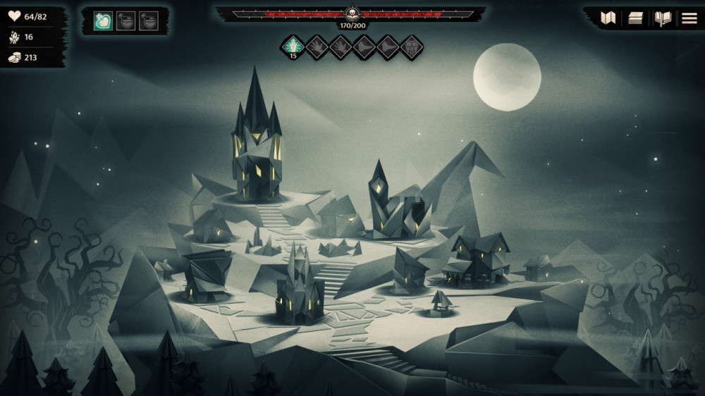 Весь мир тут выглядит как будто нарисован тушью: много бумаги, металла, всё немного странное и атмосферное. Главное, что за каждым новым забегом открывается новая порция истории о мире чернил и загадок. Перед экспедицией можно прокачать своего героя через древо навыков - прокинул очки, выбрал что актуально, и пригородился. Разных перков в каждом классе навалом, так что билдов выходит масса. Между забегами возвращаешься в Город, улучшаешь снаряжение и готовишься к новой вылазке. Карты попадаются не одни и те же: всё генерируется процессуально, так что карта всегда будет немного другой.