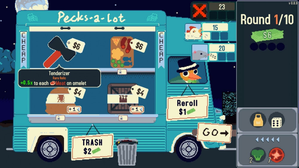 В центре внимания капризный Директор Клакер, ему подавай особые комбинации. Клиенты тоже не промах, у каждого свой характер и ситуативные условия, так что готовка превращается в постоянную адаптацию. Это рогалик с 15 чертами покупателей, из-за которых каждая сессия играет по новым правилам. То закажут перец с беконом, то внезапно попросят пончики, солёные огурцы и ананас. Вы рулите ресурсами в реальном времени, собираете колоду апгрейдов и ловите синергию между 45 ингредиентами и 30 реликвиями, строите свою машину омлетов на ходу.
