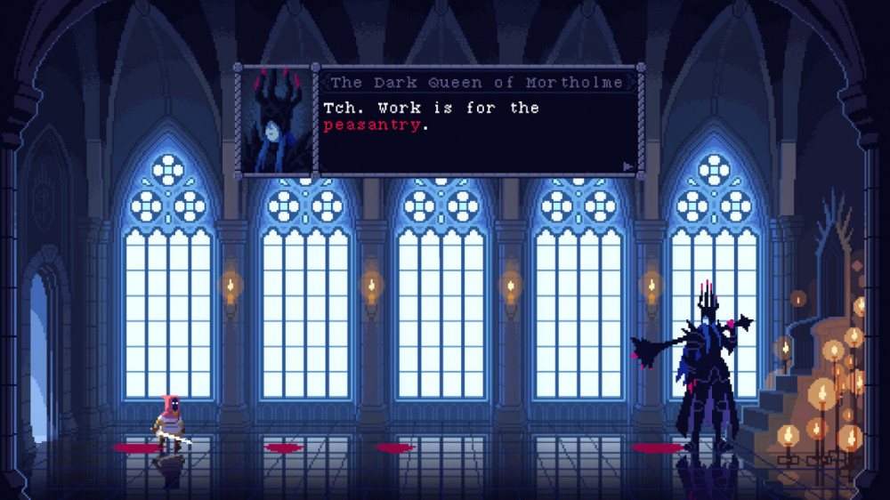 The Dark Queen of Mortholme начинается довольно необычно: Темная Королева уже победила героя, который вторгся в ее земли. Казалось бы, все кончено, но этот упрямец почему-то возвращается снова и снова, каждый раз получая по шее. Играешь за королеву в двухмерном мире с фиксированным экраном, используешь ее арсенал атак, чтобы в очередной раз укоротить наглеца. Но постепенно выясняется, что за упорством этого героя стоит какая-то тайна.