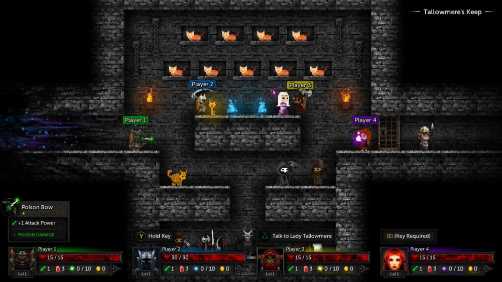Tallowmere 2: Curse of the Kittens - двухмерный экшен-платформер про странности с котятами леди Таллоумир и ритуалы, которые в подземельях никто не отменял. Спускайтесь в темные данжи, вырезайте нежить и следите за щитом: здесь важно не только бить, но и грамотно защищаться. Уровни, локации, враги и даже расположение лута генерируются случайно, так что каждый новый забег ощущается по-новому.