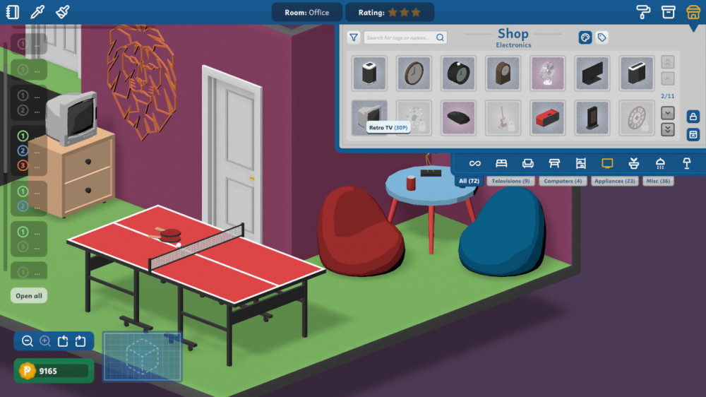 Каталог огромный - более 500 предметов для оформления интерьеров. Диваны, столы, светильники, картины, растения - всё, что нужно для создания уникальной атмосферы. Можно экспериментировать с цветовыми схемами, стилями (от минимализма до бохо), текстурами. Игра поощряет внимательность: находите скрытые и редкие объекты, которые становятся изюминкой проектов. Эти эксклюзивные вещи помогают выделиться и привлечь более требовательных заказчиков.