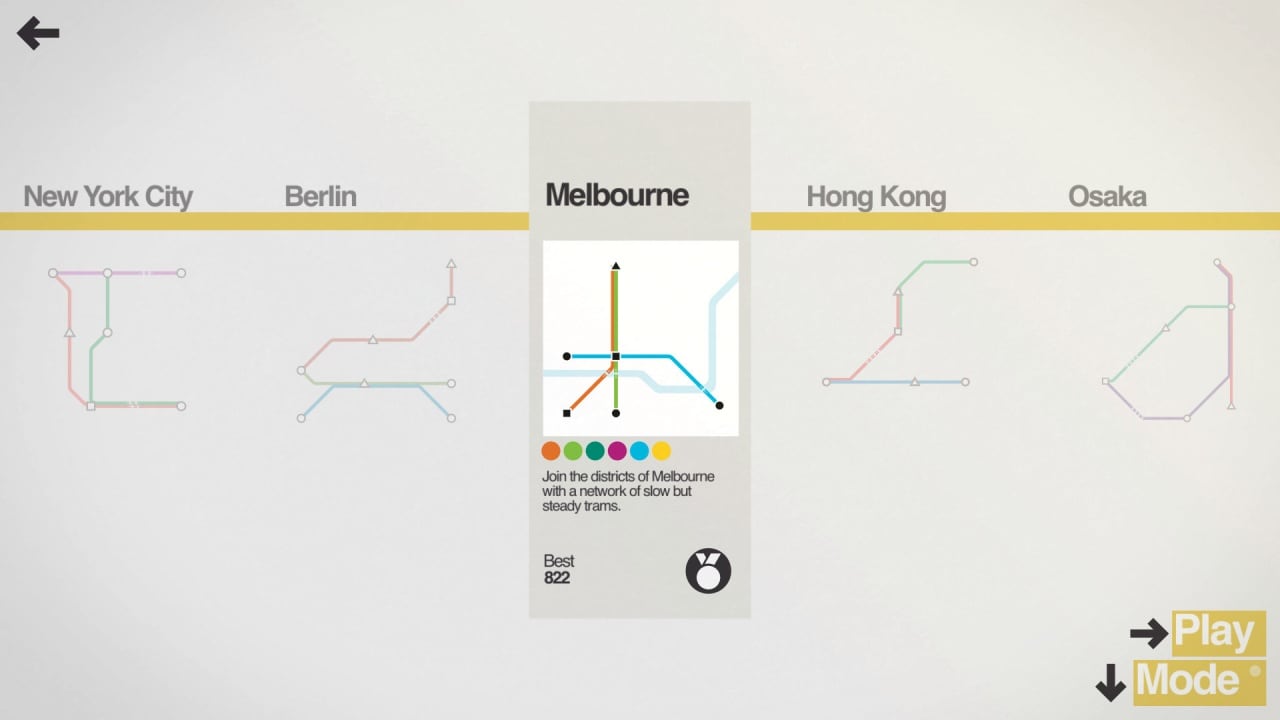 Симулятор метро состоит из 12 разных уровней, на которых смоделированы реально существующие города - Париж, Лондон, Нью-Йорк, а остальные открываются в процессе. Например, если в одном из мегаполисов суметь перевезти две сотни людей, то открывается Берлин. Особенности каждого города влияют на геймплей: открыв Осаку, можно использовать скоростной транспорт - "Синкансэн", а в Каире в городском транспорте вмещается намного меньше человек.