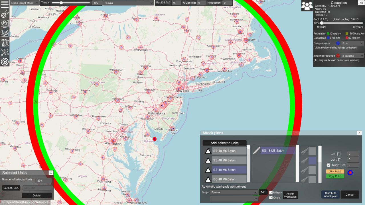 Nuclear War Simulator - симулятор ядерной войны, основная задача которого заключается в создании и моделировании полномасштабных ударов и последующих катастроф. На сегодняшний день существует 13000 единиц ядерного вооружения. Свыше 9000 боеголовок числятся в резервации. Если вы задавались вопросом: что будет, если ядерные державы, такие как Россия, Америка, Индия и Пакистан решатся нажать заветную красную кнопку, то Nuclear War Simulator даст все ответы.
