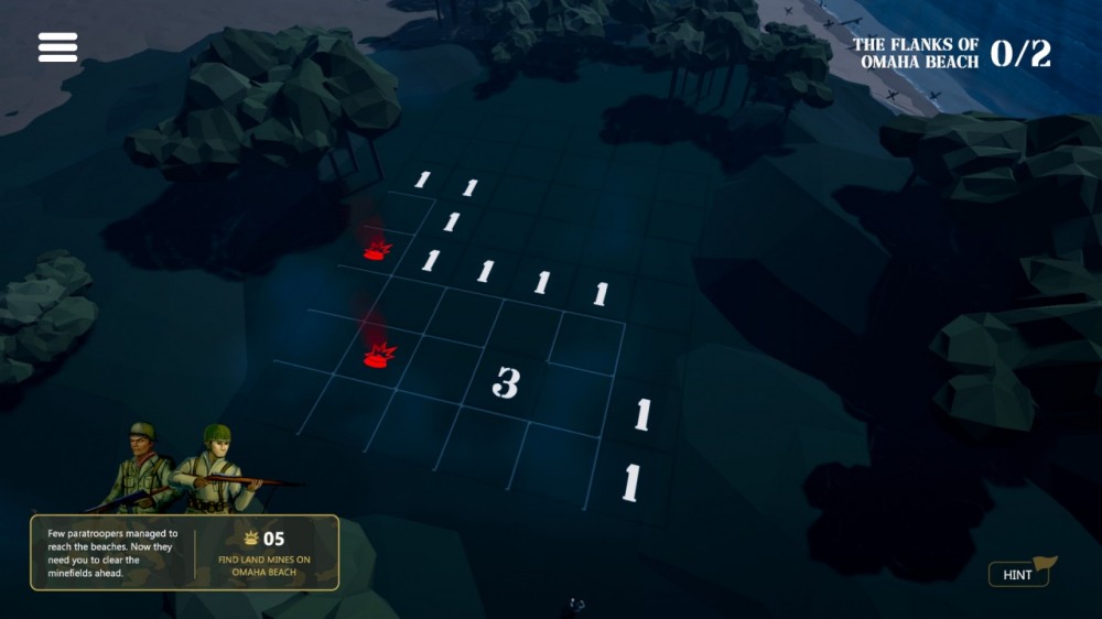На выбор представлено множество сценариев. Суть всегда одна: провести группу солдат, десантников, танки или корабли через заминированное поле. Расчищая поля, можно устанавливать взлетно-посадочные полосы, медицинские лагероя и множество других форпостов. Всего представлено порядка 35 головоломок, а основная кампания включает 12 сложных сценариев, бросающих вызов даже самым опытным тральщикам. Визуальная часть представлено лоу-поли стилистикой, концентрируясь исключительно на геймплее.