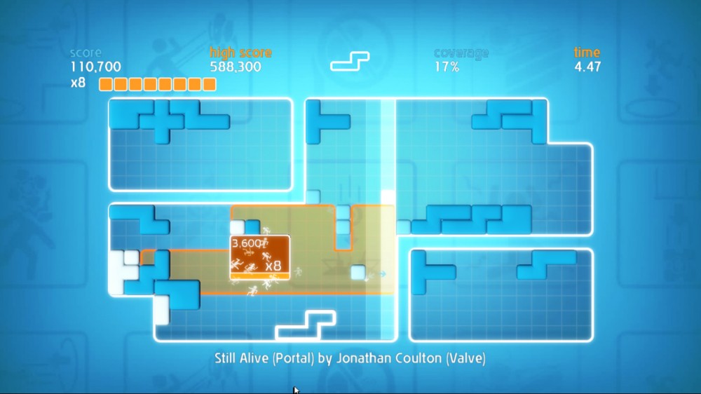 Вращайте и размещайте фигуры, чтобы с них формировать твердые объекты. Заполняйте специальную сетку, стараясь выполнить задание до того, как истечет время. Над музыкой к Chime трудились такие известные музыканты, как Моби и Пол Хартнолл из Orbital. Создавайте собственные ремиксы, заполняя специальные сектора.
