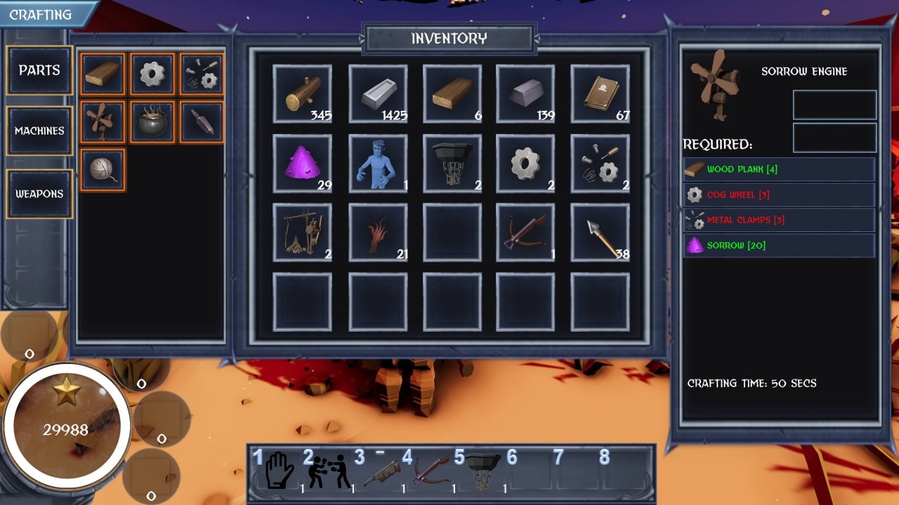 Грешников с каждым днем прибывает все больше и их уникальность падает, поэтому цена за жертву значительно снизилась. Мыльный пузырь заставил героя сводить концы с концами. Он сам себе крафтит экипировку, оружие и конструирует различные приспособления из подручных средств. За каждого убитого человека демон получает какую-никакую прибыль.