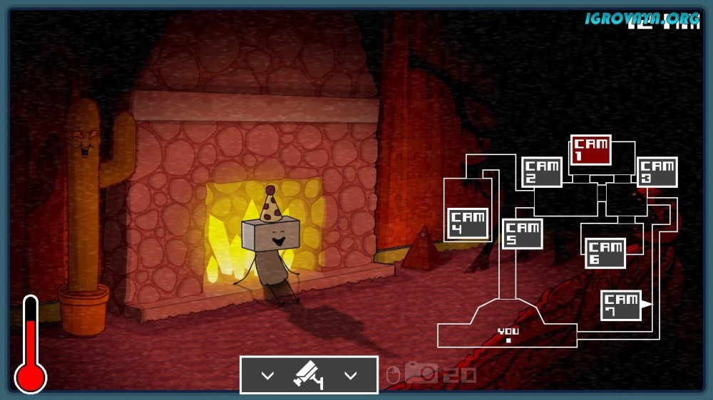 Сложности добавляет то, что герой постоянно мерзнет. Комната постепенно покрывается льдом, поэтому необходимо постоянно согреваться, тем самым отвлекаясь от камер. Самый важный артефакт в игре - яйцо Флампти. После прохождения можно переиграть сценарий. Врагами выступают различные вариации Флампти Бампти. Каждое яйцо имеет свой уникальный внешний вид и способности. С внутриигровым часом сложность повышается, а монстры начинают действовать агрессивнее.
