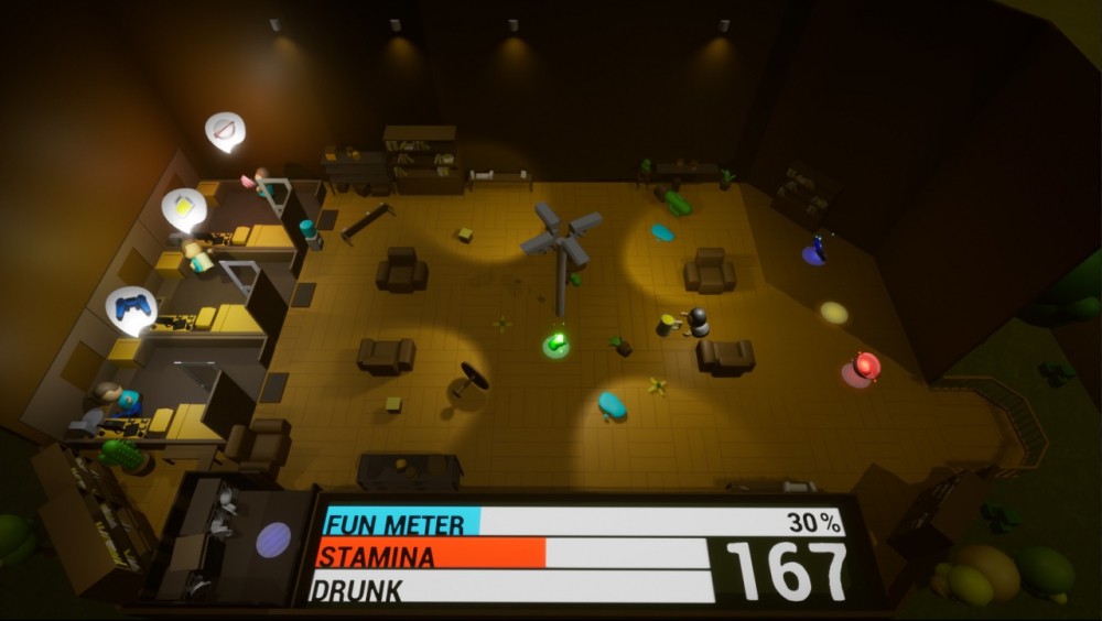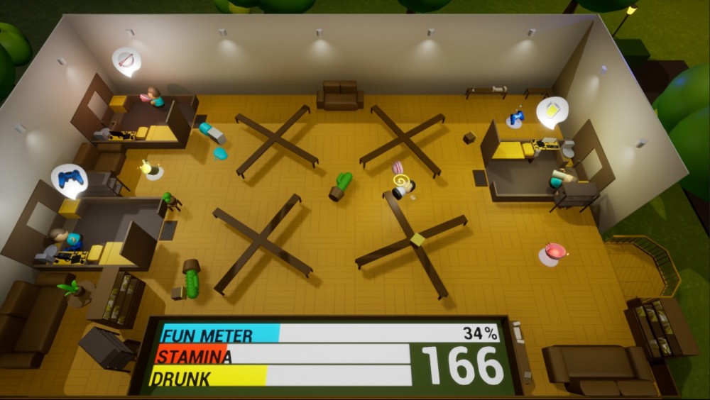 Кампания состоит из 12 уровней с постепенно нарастающей сложностью, не считая обучения. На каждом из этапов протагонист бродит по помещениям университетского городка в поисках развлечений. Чтобы пройти карту, нужно заполнить шкалу веселья до того как закончится время. Также есть полоска выносливости и опьянения. В инди-тайтле можно пить пиво, играть в видеоигры и заниматься другими вещами. Если ученик переберет со спиртным, то его начнет заносить, и он будет врезаться во всё подряд. Видеокамеры, коменданты и охранники мешают добраться до способов веселого времяпрепровождения. Поэтому необходимо прятаться от них в темноте или других помещениях, чтобы не начинать эпизод заново. На экране отображаются радиусы видимости камер наблюдения и людей, что помогает не попадаться им на глаза.