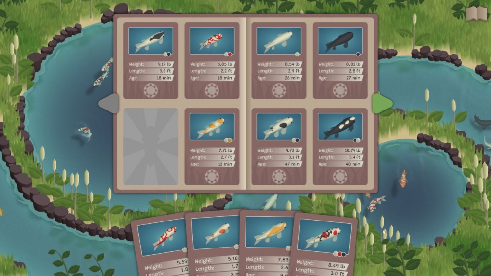 - Сохранять понравившихся Кои в коллекционных карточных формах, записывая в книгу полученные результаты и пути к разведению.