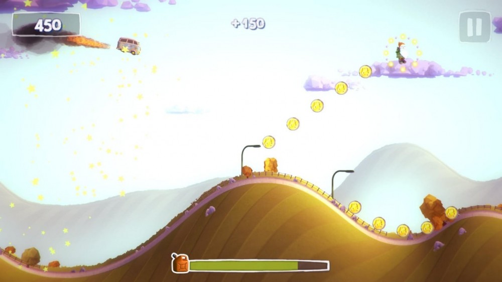 Sunny Hillride – это аркадные гонки с видом сбоку. Тут нет заездов на время и соревнований с другими машинами. Для победы надо просто доехать до конца карты, заработав по пути как можно больше очков. Но сделать это будет непросто.