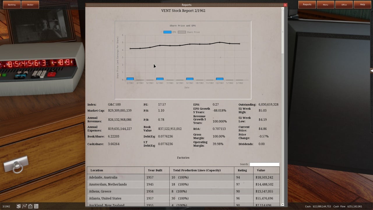 Симулятор имеет мощную историческую базу и пытается преподнести пользователям важную информацию – как именно стать лидером в бизнесе. Геймплейная механика предлагает с нуля построить процветающую компанию: управлять производством, регулировать поставки товаров и компонентов, модифицировать техническое оборудование и устанавливать цены. Проект предлагает огромную вариативность развития и скрупулёзную реалистичность. Для достижения наилучшего результата вам придется проверять ежемесячные отчеты, следить за новостями, считать прибыль, прослеживать действия конкурентов и темпы роста рынка.