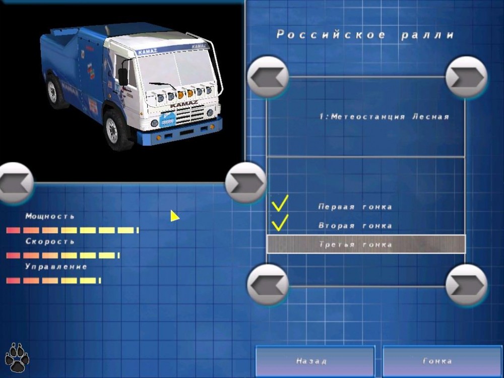 КамАЗ: Российское ралли дает возможность пользователям очутиться за рулем тяжелых грузовиков, что будут передвигаться через труднопроходимые маршруты по пересеченной местности. Игроки возьмут под управление отечественные тягачи, которые отправятся в раллийные испытания. Придется соревноваться с другими гонщиками, продвигаясь по аркадным уровням. Игроки будут управлять тягачами, самосвалами и пожарными типами фур, выполняя миссии на прохождение дистанций на время или участвуя в гонках, где важно обойти соперников.