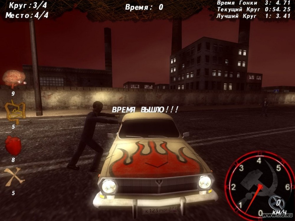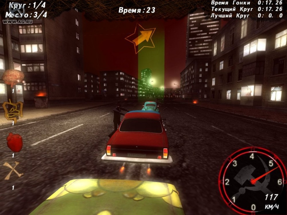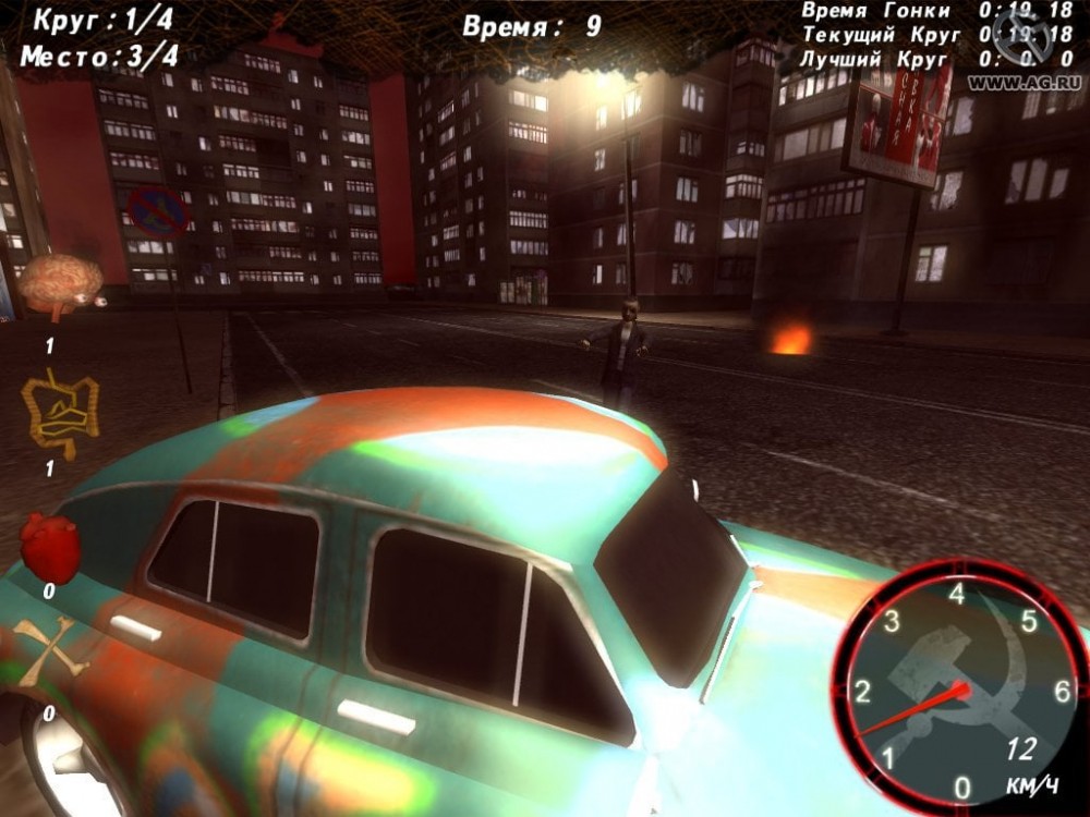 Ваша задача - ездить по улицам городов СССР и давить зомби, собирая бонусные очки. Чем больше вы собьете нежити во время заезда, тем выше будет ваш балл. Поэтому в Ретро-Тачки: Советский Апокалипсис есть две главные цели: участвовать в заездах, стараясь добраться до финиша первым и сбить как можно больше живых мертвецов, заполонивших улицы городов. На собранные очки можно устанавливать новые модули. Также доступны таблицы лидеров, отслеживающие ваши лучшие показатели по количеству убитых и минимальное время преодоления трассы.