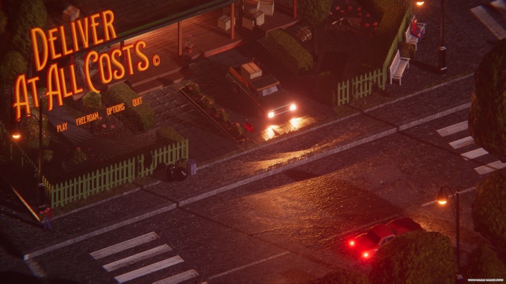 Deliver At All Costs - симулятор курьера, позволяющий прочувствовать настоящее безумие и суету данной профессии. Пытаясь доставить посылку, предстоит попадать в вечные пробки, нелепые ситуации и т.п. Перемещаться по городу необходимо на своем подержанном пикапе. Однако у него есть одна особенность: возможность ускориться при помощи нитро. Deliver At All Costs - проект, делающий огромный упор на юмор и сумасшествие.