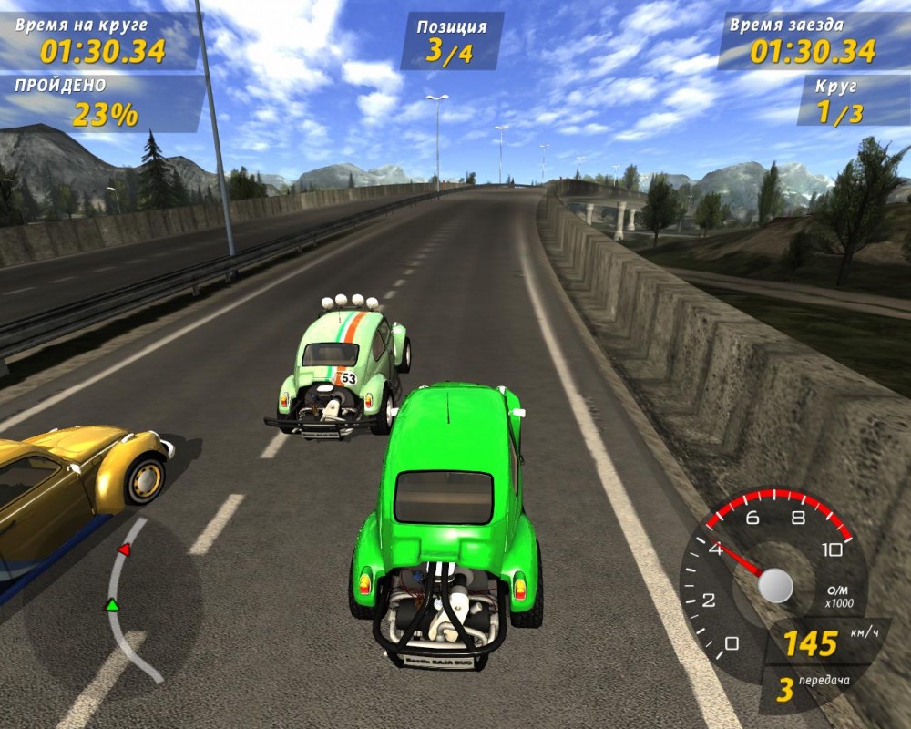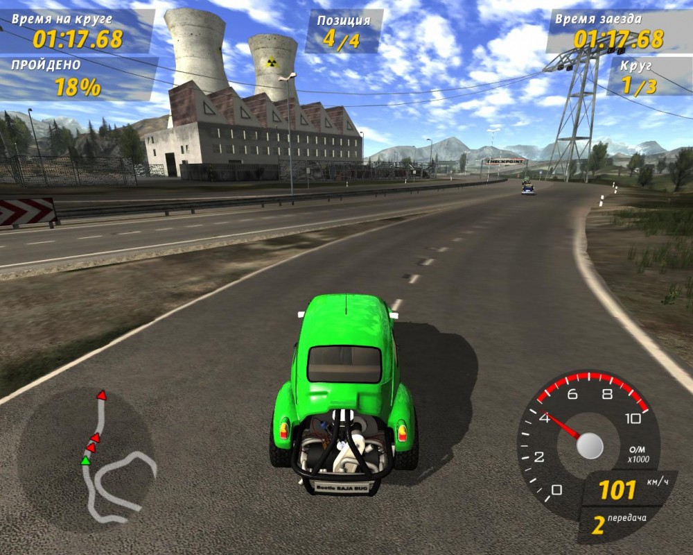 Корпус машин представлен реалистичным повреждением. Каждый вид авто максимально реалистично ведет себя на трассе. Осуществлено динамическое взаимодействие между соперниками и различными препятствиями на дорогах. Всего доступно более 70 гонок в нескольких режимах. Сыграйте на 6 разных локациях. Побеждая в соревнованиях, копите средства для улучшения транспорта или покупайте новые виды авто. Доступен как одиночный режим, так и многопользовательские заезды по локальной сети или интернету.