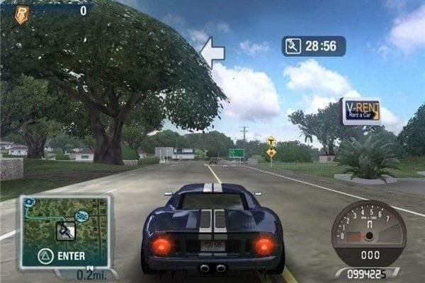 В видеоигре представлена целая карта известного города, со всеми важными районами – Hollywood Hills, Santa Monica, Downtown, South Central и South Bay. Местность воссоздана с высокой проработанностью, вплоть до реалистического трафика, где на дорогах могут завязаться даже пробки. Но периодически, чтобы добраться до заданной точки, нужно побыть пешеходом, и доблестно дойти до гаража или события, ориентируясь по GPS. А по части машин, всё выполнено на высоком уровне, ведь техника введена по настоящим лицензиям, и подлежит кастомизации в специально отведённых зонах.