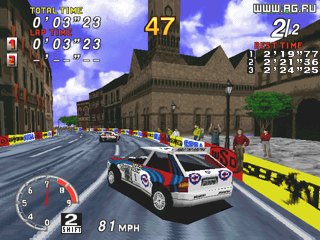 В Sega Rally Championship доступно всего два автомобиля. Зато тачки лицензированы, и их позволяют настраивать. На выбор дается Lancia Delta или Toyota Celica. В них можно настроить коэффициент трения шин, откалибровать руль, отрегулировать клапан сброса избыточного давления турбины, определить жесткость передней и задней подвески.