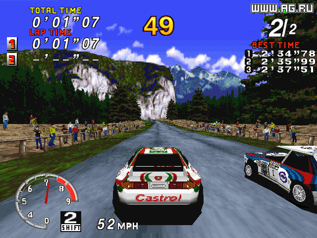 Есть несколько режимов: Arcade, Time Attack, 2 Player Battle, Link Game. Можно ездить одному или с 14 ботами. Также в наличии мультиплеер, рассчитанный на двух игроков. Для победы нужно обогнать всех соперников и добраться до финиша первым или уложиться в таймер. Все заезды проходят на время. Даже те, что проводятся с участием других машин. По дорогам расставлены чекпоинты. При проезде через эти контрольные точки добавляются дополнительные секунды. Мини-карта отсутствует, однако штурман постоянно подсказывает, какие ближайшие препятствия ждут на пути. Сама игра с помощью иконок тоже предупреждает о предстоящих типах поворотов. Всего тут 4 этапа: пустыня, лес, горная местность и секретный уровень. Чтобы на него попасть, необходимо показать хороший результат.
