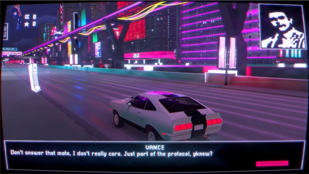 Завязка тут следующая. Протагонист был членом банды во Внешней Аделаиде. Когда группировка потерпела крах, антигерой перебрался в мегаполис и устроился курьером в компанию Moonwave Cruiser Company. Теперь он пытается начать новую жизнь и старается держаться подальше от своего темного прошлого. В тайтле надо выполнять заказы, отвозя посылки по нужным адресам в ночное время суток. При желании можно отказываться от заданий. Постепенно водитель получает новые машины (есть пять моделей, и их можно улучшать) и зарабатывает репутацию. От неё зависят отношения с конкретными NPC. Рейтинг открывает доступ к более прибыльным поручениям, но также он может привести к неприятностям. Всего в продукте около 150 квестов.