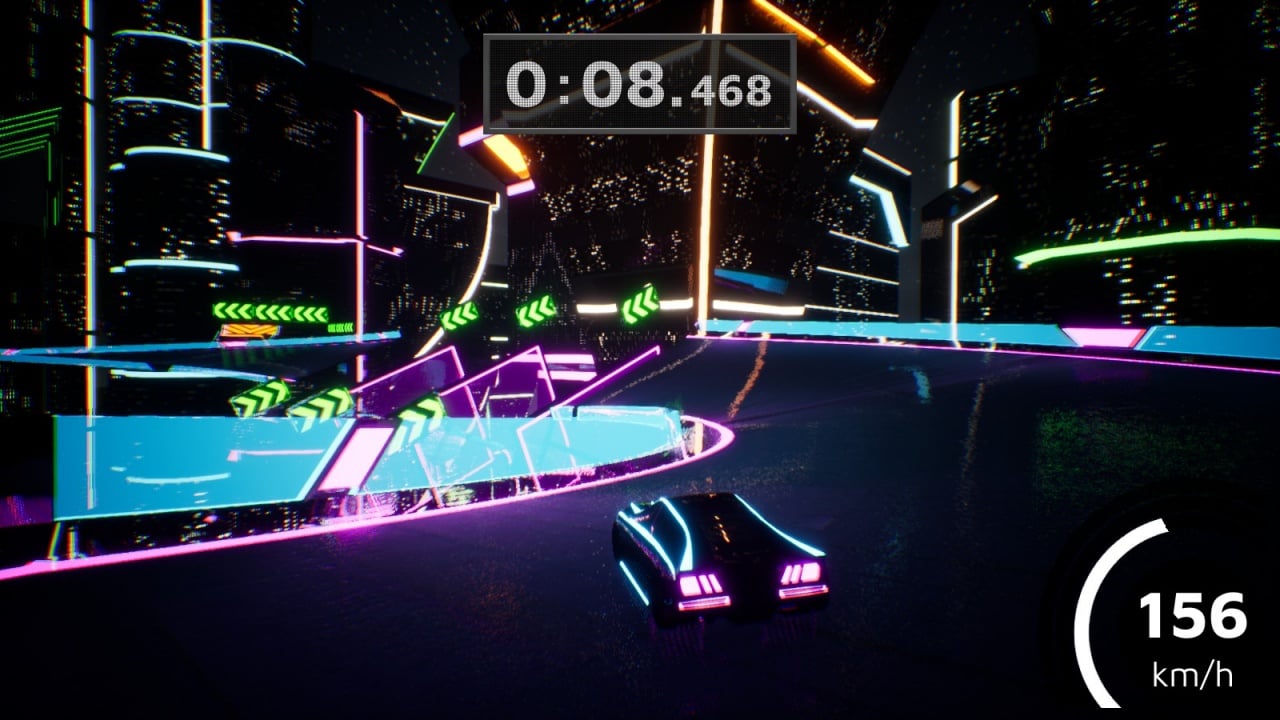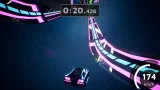 В игре есть вид от первого и третьего лица. Гонки ведутся в быстром темпе, и система учитывает скорость прохождения трассы. Нужно набрать определенное количество очков, чтобы открыть следующий трек. Каждый новый этап требует все больше проходных баллов. Перед стартом дается 3 отрезка времени – зеленый, желтый и голубой. Если уложиться в первый минимальный срок, юзер получит наилучший результат. Можно возвращаться на уровни по несколько раз, чтобы установить новые рекорды. На треках есть много деталей, усложняющих или помогающих в гонке: предупреждающие знаки, дыры, настенная езда, прыжки, тормоза и ускоряющие бустеры.