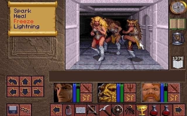 Хочется отметить классическое визуальное оформление и способ управления в игре. Lands of Lore: The Throne Of Chaos вышла давно, поэтому графика здесь местами пиксельная, но это не делает ей хуже, даже наоборот. Управление в игре осуществляется с помощью мыши, которой игрок нажимает на кнопки поворота или движения вперед-назад. Поначалу Вам может быть неудобно управлять персонажем именно так, но со временем это перестанет доставлять дискомфорт.