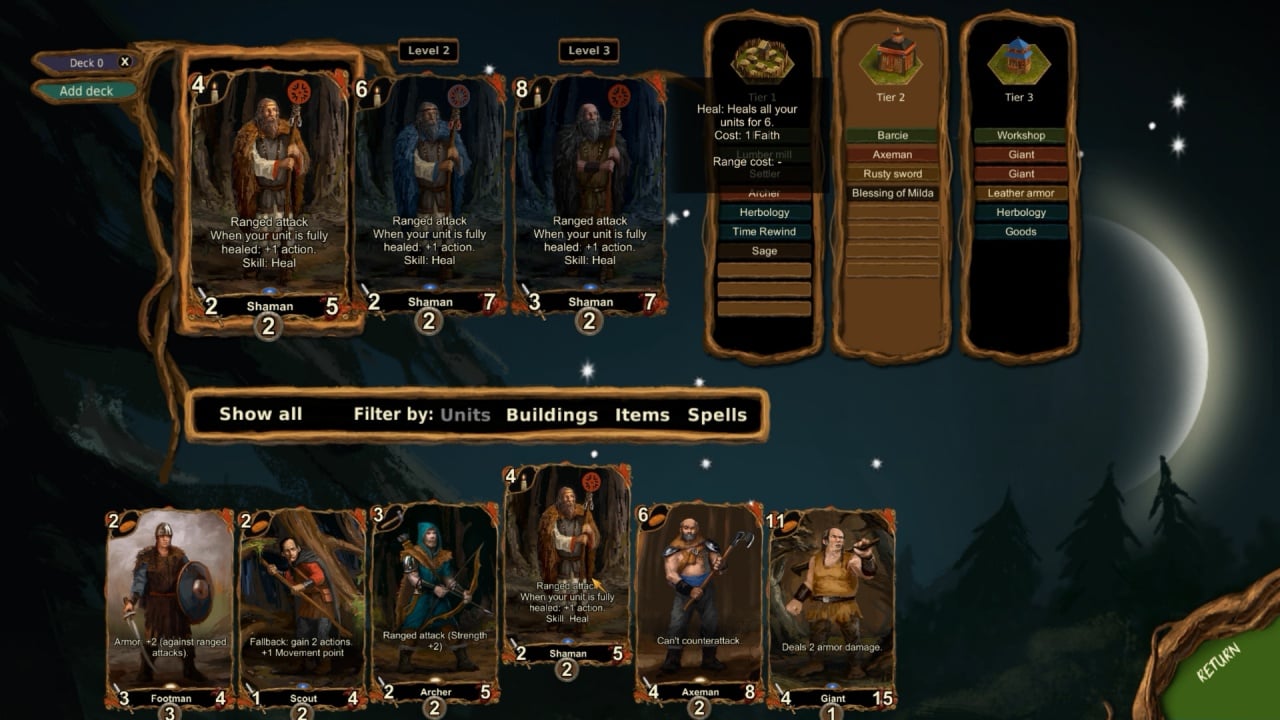 Вы будете управлять небольшим племенем, которое пытается найти свое место под солнцем. Открывайте новые карты, выполняйте многочисленные квесты и собирайте колоду карт, состоящую из разных героев и существ. Создавайте цепочки и комбинации атак, сражаясь с врагами в пошаговых поединках.