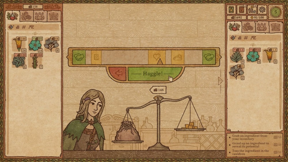 Все взаимодействия с разнообразными ингредиентами (листья, грибы, корни, минералы, фрукты, ягоды и так далее) для будущих настоек происходят при помощи физического воздействия пользователя благодаря мышке. Это повышает степень вовлеченности в процесс и позволяет почувствовать себя настоящим средневековым алхимиком, которому приходилось постоянно возиться с варкой зелий, раздуванием углей под котлом, перемешиванием жижи и с многим другим.
