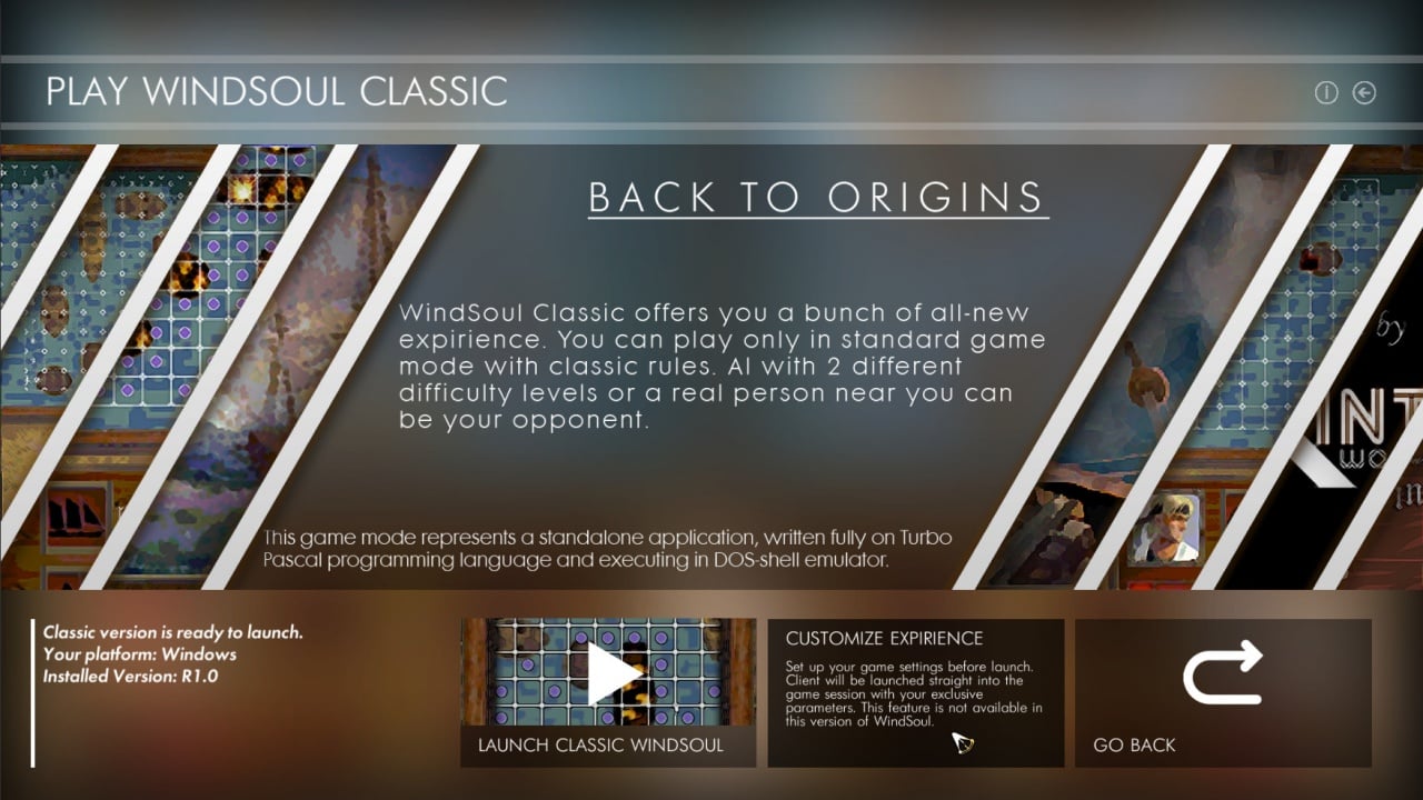 Классический режим WindSoul представлен стандартной схемой, где на полях клеток выведены буквы от A до L и цифры от 1 до 10. В случае, если кому-то удастся подбить вражеское судно, то клетка отмечается крестиком. Эта версия включает в себя двухмерные спрайты с 256-битной цветовой гаммой.
