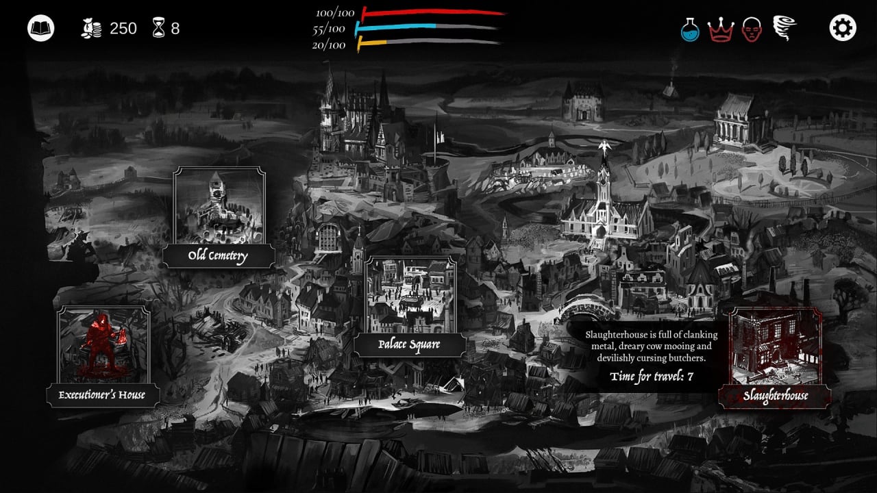 Интерфейс игры преимущественно текстовый. Вас ждет увлекательная история в мрачной атмосфере мира, полного моральных противоречий!