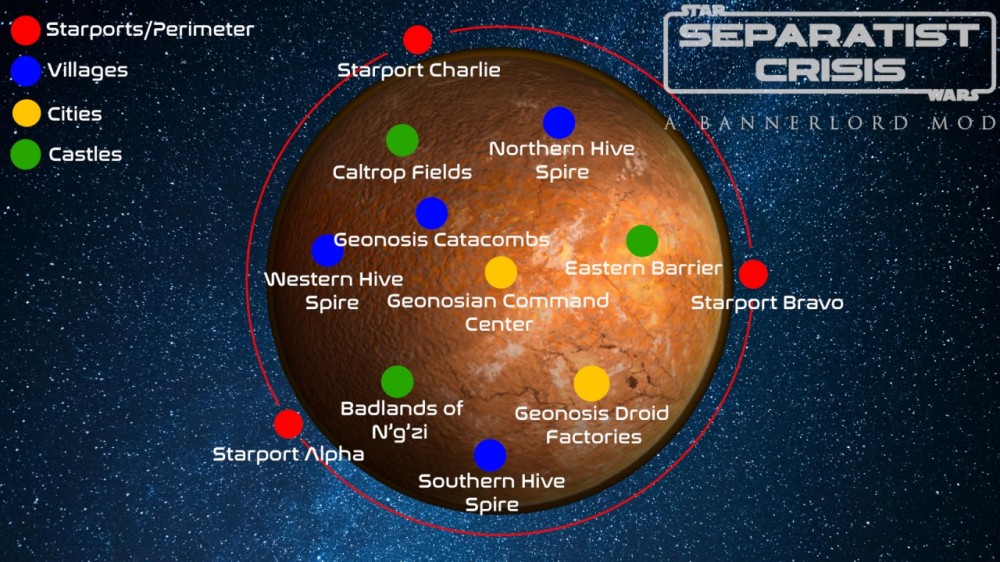 Mount & Blade 2: Bannerlord - Separatist Crisis – это глобальный мод. Он меняет сеттинг со средневекового на научно-фантастический, заменяя текстуры, модели и прочие элементы. Место действия переносится из Кальрадии во вселенную Star Wars. Причем одним континентом дело не ограничиваются. Здесь позволяют путешествовать между планетами, а также грабить небесные тела и нападать на корабли. Фанатская работа посвящена эпохе Войн Клонов, но помимо этого она вдохновлена классической трилогией и различными расширениями лора.