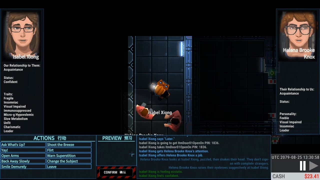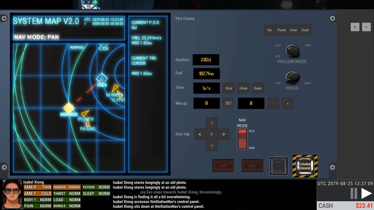 Члены экипажа имеют важную роль в игровом процессе, ведь они всегда помогают протагонисту. Союзники обладают психологическими и физическими потребностями, поэтому для обеспечения здорового микроклимата в коллективе, необходимо следить за их желаниями. В показатели каждой личности входят: еда, вода, температура на борту, запас кислорода, конфиденциальность, безопасность, близость и уважение.