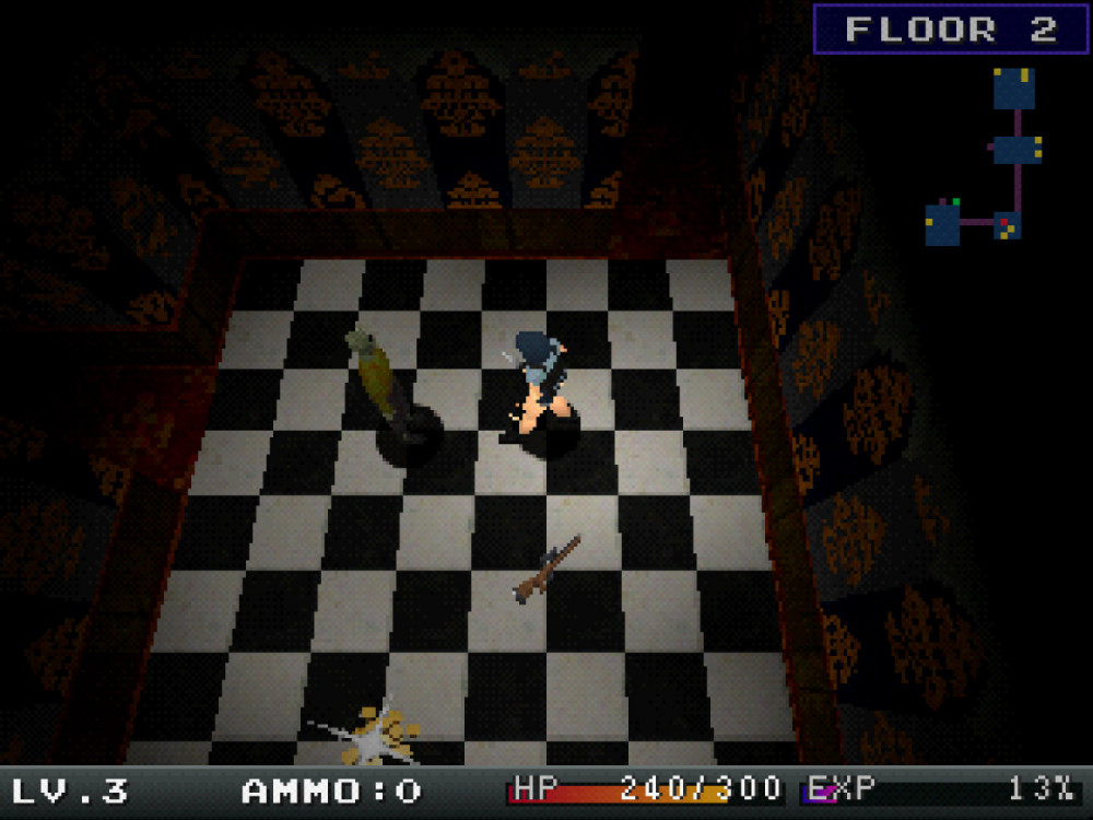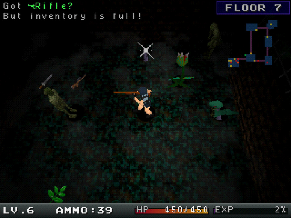 Геймплей разделен на две части. В центральной локации-хабе используются фиксированные ракурсы камеры и танковое управление на фоне заранее отрисованных задников (привет, Resident Evil). Когда заходишь в основные секции подземелий, перспектива меняется на пошаговое перемещение по клеткам. Бои тоже пошаговые, требующие умного распределения ресурсов. Нужно грамотно расходовать ограниченные запасы, чтобы справляться с зомби и продвигаться глубже в дом.