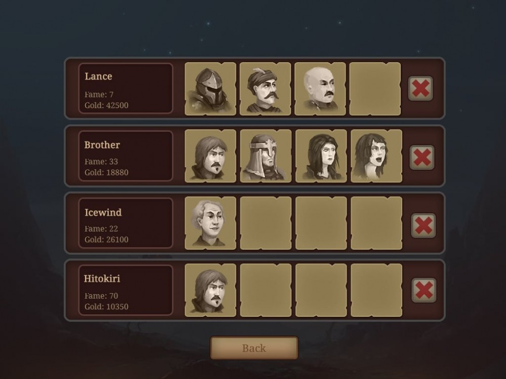 На старте создается один персонаж. Помимо класса, можно также выбрать пол и внешность персонажа. После этого игрок может на свое усмотрение перераспределить скилпоинты, а также подобрать стартовое снаряжение и набор заклинаний/умений. Уровень сложности определяет количество стартовых ресурсов.