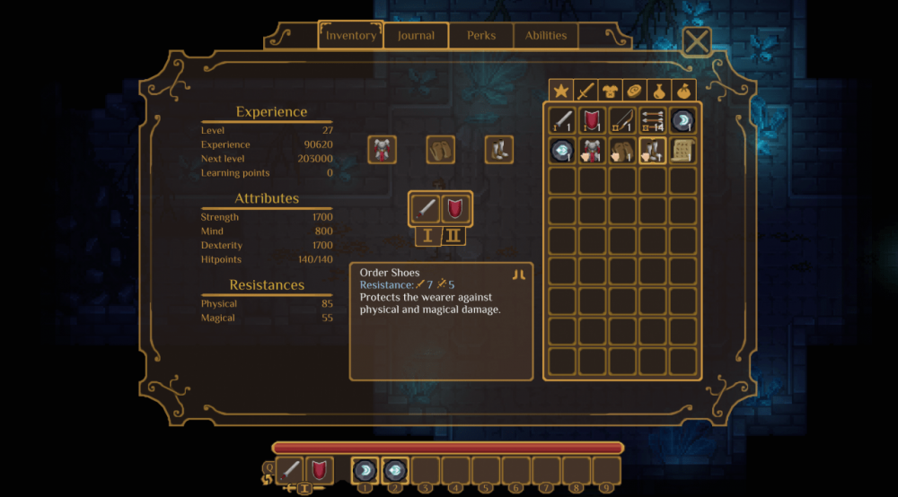 Хождение по локациям и схватки с врагами происходят в реальном времени. Боевая система позволят блокировать удары противника и совершать различные типы атак. У бойца есть 4 параметра: сила, ловкость, количество здоровья и ум (аналог интеллекта). Он накапливает опыт, растет в уровнях и получает очки, что разрешают распределять. Также герой обзаводится новыми способностями и перками по мере прокачки.