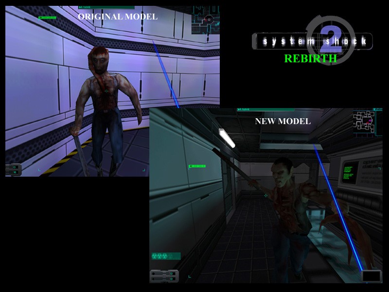System Shock 2: Rebirth дает культовой игре вторую жизнь. Модификация улучшает графику. Она заменяет модели объектов аналогами с куда большим количеством полигонов. Текстуры в этой версии тоже более детализированные.