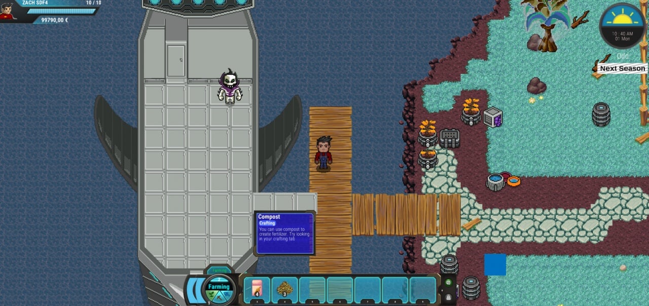 Space Farm – это гибрид ролевой игры, симулятора фермера и песочницы. У инди-продукта пиксельная графика. Камера расположена сверху под углом. Геймплей в целом такой же, как и в других виртуальных развлечениях этой категории. Здесь можно заниматься выращиванием сельскохозяйственных культур, ловить рыбу, добывать ресурсы, крафтить предметы и объекты, сражаться с монстрами.