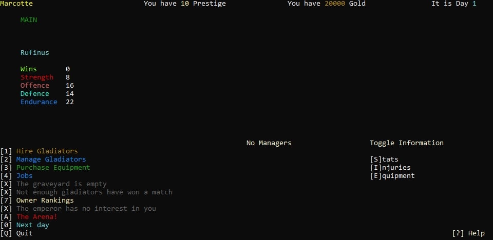 Gladiator Manager даст пользователям возможность поучаствовать в самом кровавом и жестоком спорте в истории человечества – гладиаторских боях. Юзеры возьмут на себя роль менеджера команды бойцов. Команды пополняются людьми из числа рабов, преступников, ветеранов и простых граждан. Их происхождение влияет на характеристики.
