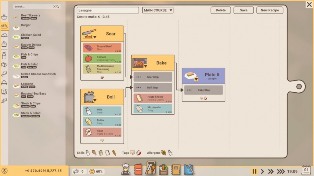 Игровой процесс полон трудностей и препятствий. В сюжетной кампании развитие происходит постепенно, а пользователь получает определенные подсказки. Мир наполнен динамичными событиями, происходящими внутри ресторанной индустрии. Построить империю "питания" будет трудностей задачей. Геймер сможет набрать команду из разных персонажей с собственными навыками и характеристикой. Их внутренние конфликты могут подставить всю миссию под сомнение.