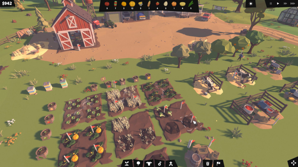 Начинаешь с нескольких грядок овощей и фруктов. Каждая культура требует внимания, иначе хорошего урожая не видать. Постепенно открываются новые растения для выращивания - производственный потенциал растет. Потом появляется возможность купить технику для переработки: делаешь из помидоров томатный соус, из фруктов сок, из молока сыр. Экономическая модель становится интереснее, когда можешь не просто сырье продавать, а готовые изделия.