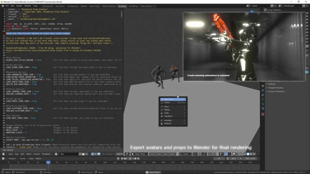 Делая дубли в Motion Capture Fusion [ VR ] при помощи датчиков, выйдет объединить несколько захватывающих уровней, чтобы добиться плавной картинки с полной синхронизацией тела, движений и мимики лица, губ при разговорах и отслеживании взгляда или пальцев, несмотря на моторику и микродвижения. Человек получает шанс соединиться с желаемым аватаром, чтобы создавать творческие работы или научиться взаимодействовать с технологичным оборудованием, позволяющем получить новый опыт. При помощи отснятых дублей, создаются цельные постановочные сцены, которые в дальнейшем получится использовать в видеопродакшне. После отснятых данных, можно выводить полученные данные через Blender, чтобы быстро производить финальный рендеринг.