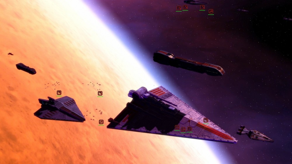 Как и оригинал, игра сочетает в себе пошаговую и реалтаймовую стратегию. В глобальной фазе юзер создает, улучшает и перемещает флот и войско. Когда дело доходит до сражений, то включается привычный для RTS реалтаймовый режим. Процесс изучения технологий был переделан, чтобы отображать выбранную мододелами эпоху. С этой же целью неофициальные создатели разработали систему, что влияет на сюжетные ивенты, группировки, доступность тех или иных героев и простых юнитов. Галактическая карта настроена таким образом, чтобы воссоздавать основные моменты из лора. Секторальным Силам, Банковскому Клану, Техносоюзу, Коммерческой Гильдии и Торговой Федерации была отведена роль подфракций. Играть за них не дают. Зато новая правительственная механика позволяет геймерам по-разному взаимодействовать с ними.