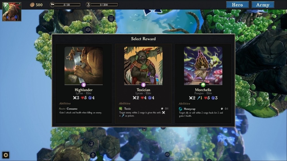 В приключении важен моральный настрой команды. Многие из них нуждаются только в определённых предметах или обучении новых навыков. На поле расположен стихийный элемент, а до него потребуется добраться, чтобы вызвать существо и расположить его на гексе. Разные постройки необходимы для усиления маны или предоставления бонусов. На каждой карте у пользователя будет определенное задание как уничтожение босса или сбор ограниченного количества очков.