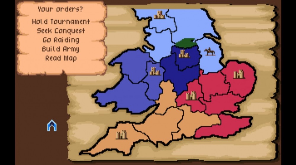 События разворачиваются на стратегической карте. Она поделена на провинции. В них разрешают нанимать войска. Деньги зарабатываются двумя способами. Можно собирать налоги с жителей и совершать набеги с целью грабежа. В этом продукте игрок способен попасть в плен. Тогда придется потратить внушительную сумму, чтобы выкупить самого себя. Ещё здесь присутствует нелинейность. Чтобы получить интересующий надел, необязательно отправлять туда войско. Можно вызвать владельца на рыцарский поединок и забрать вражеские земли себе в случае успеха. Ещё тут разрешают проводить осады и захватывать солдат противника.